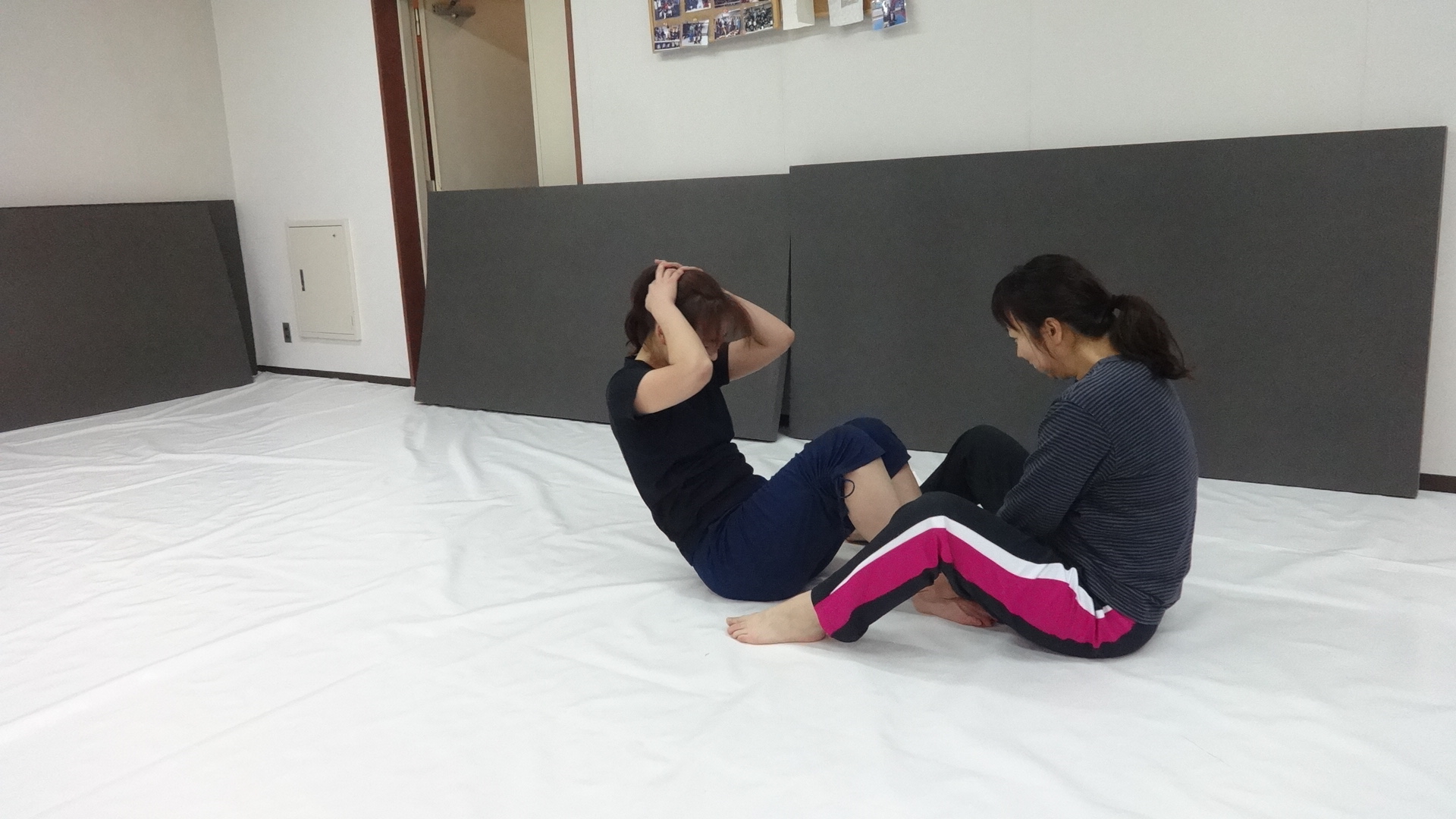 最後は女性でも出来る腕立て伏せと、腹筋をやりました(^^)v
