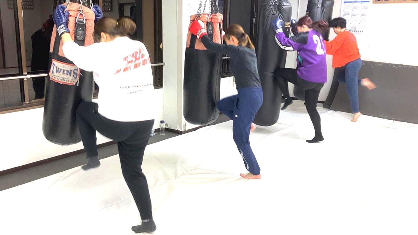 【女性限定レディースフィットネス キックボクシングクラスの練習風景はこちら 】
