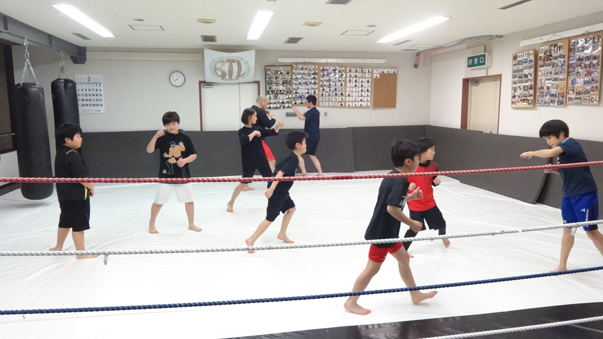 キッズはリングで攻守交代しながらコンビネーションとディフェンス練習をやりました!(^^)!