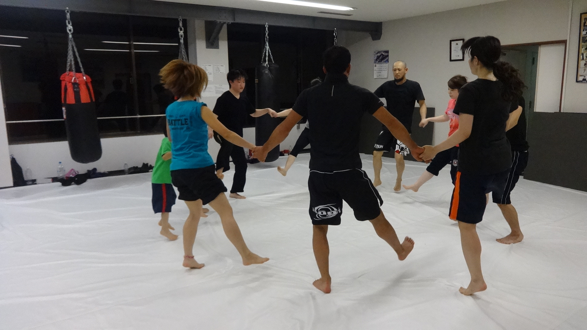 前に来る相手を回ってかわして打ち込む練習と前蹴りを練習しました(^^)