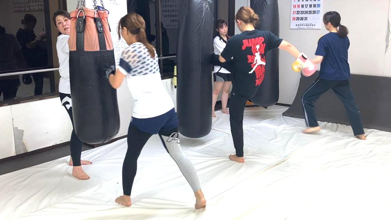 【女性限定レディースフィットネス キックボクシングクラスの練習風景はこちら 】