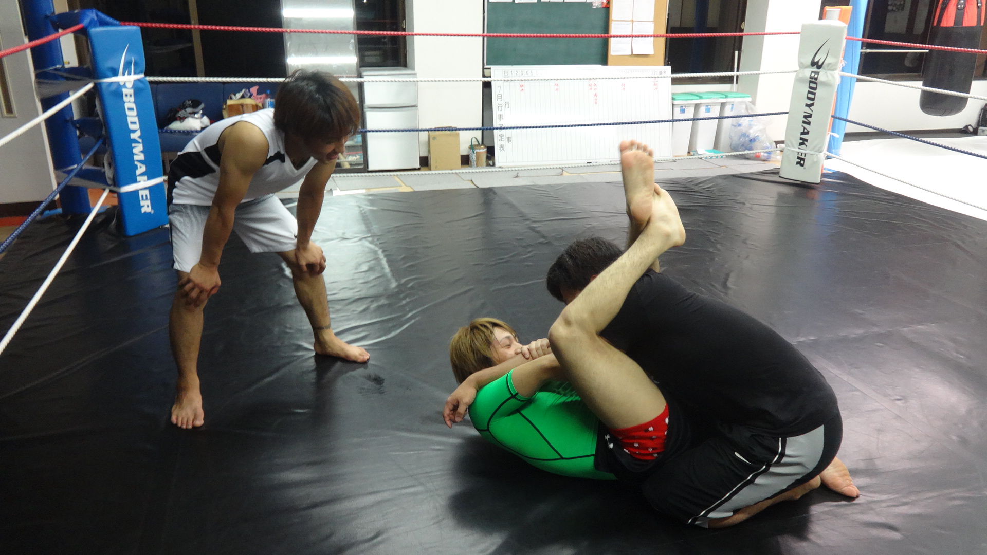 後半は初心者は組技の絞め技練習と選手達はMMAスパーでした(^^)