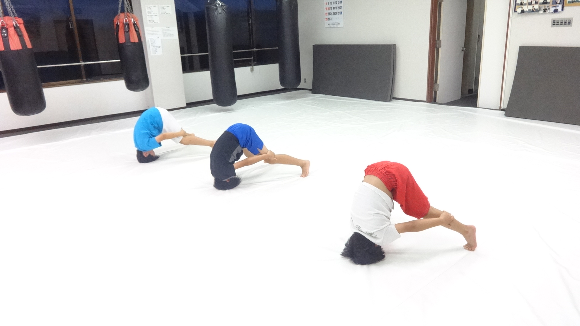 準備体操の後は前後ブリッジ&三転倒立から!(^^)!
